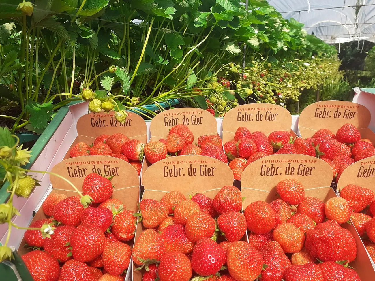 Het seizoen begint al vroeg: in januari worden de eerste aardbeienplanten in onze kas geplant. Vanaf april kunnen we daar al van oogsten.